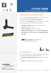 Certified PAS68, IWA14, ASTM level M30 at 50 km/h, the 275/K4SF 900RM shallow-foundation removable bollard offers both a compact height and a reduced excavation depth (200 mm); a combination that makes it ideal for sensitive areas requiring maximum protection with minimal footprint.